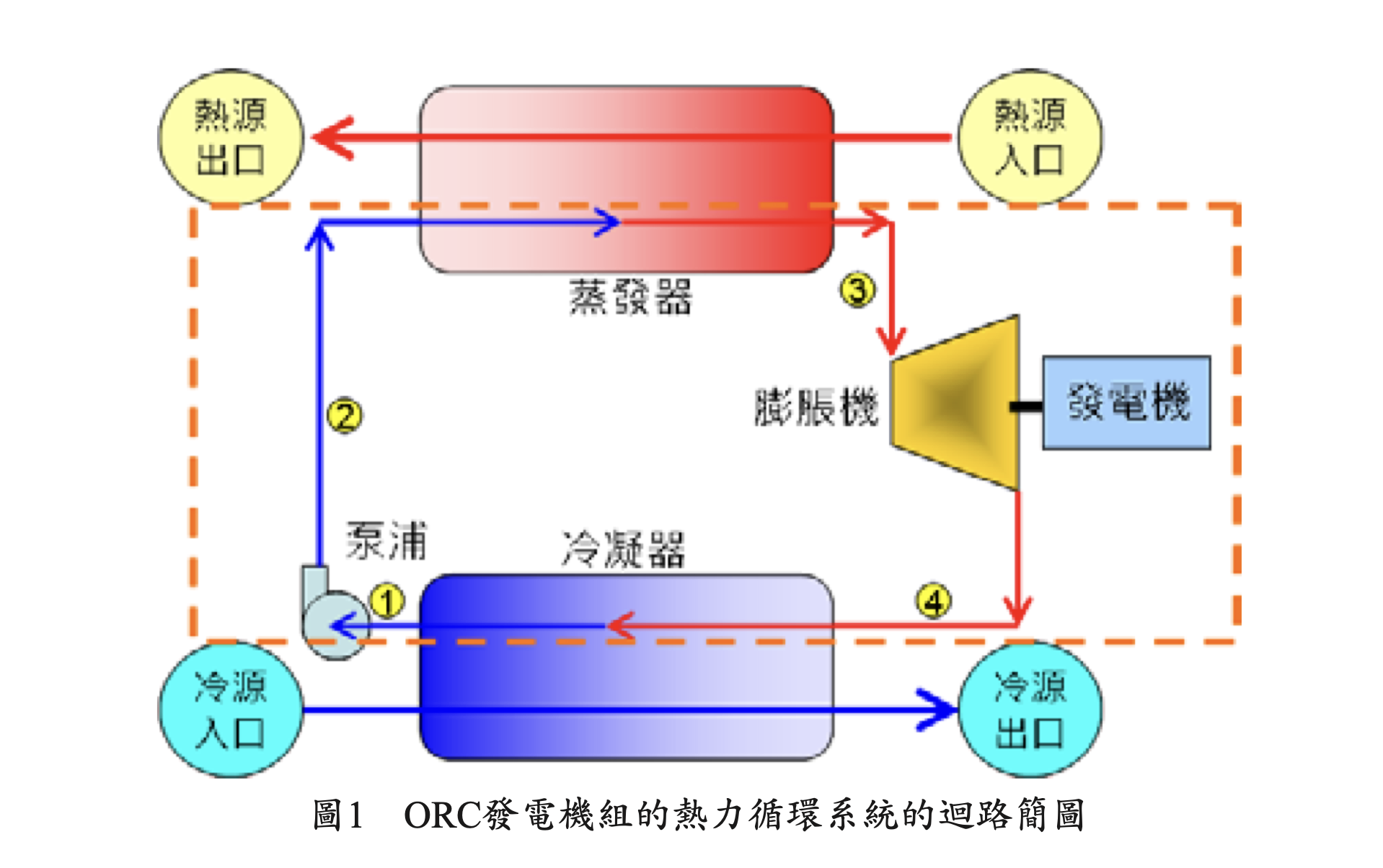 圖中為清水地熱發電展示區的ORC(有機朗肯循環)發電系統示意圖。